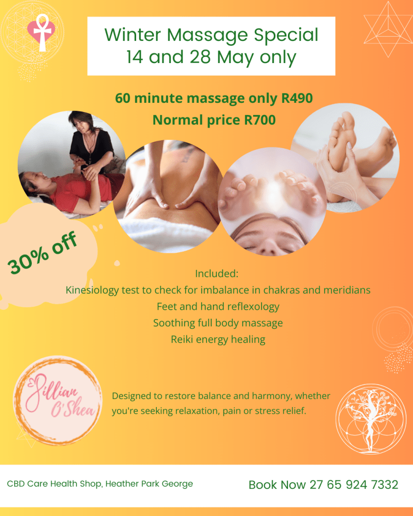 I get quite a few requests from clients around George and Wilderness so I am happy to announce that I will be available for consults from George from May 2025. This month I am practicing from CBD Care,Health Shop, Heather Park Shopping Centre on the 14th and 28th of May. I can only take 3 people per day so please book timeously if you want to see me.